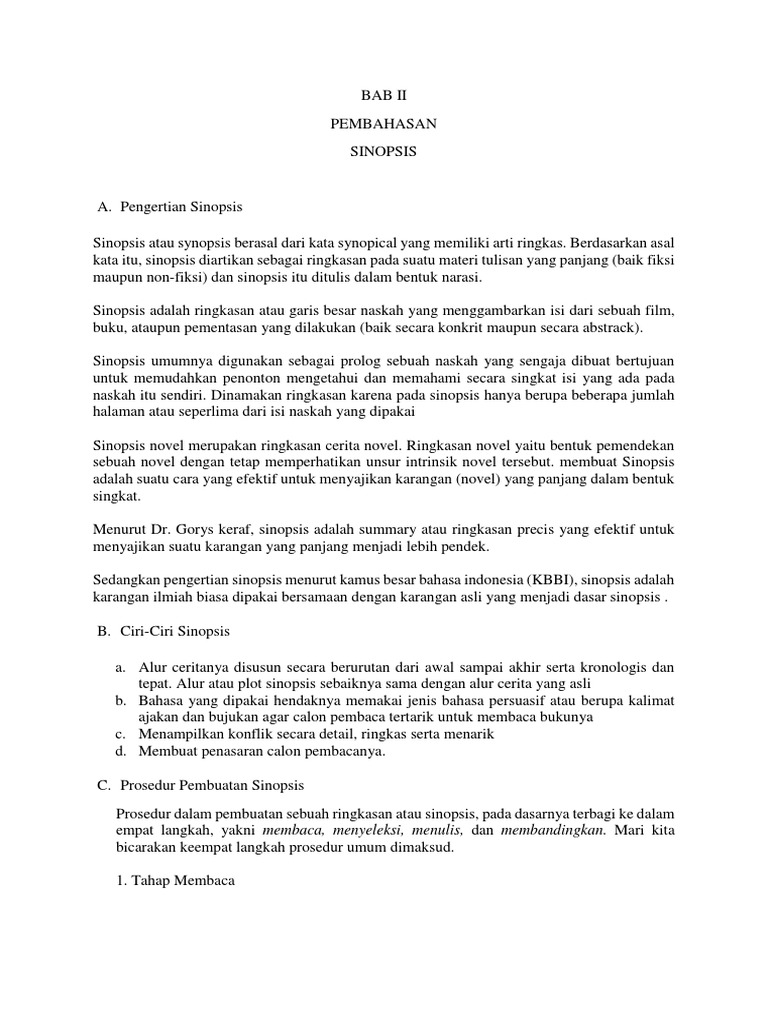 Pengertian Sinopsis Ciri Fungsi Persiapan Langkah Contoh from www.gurupendidikan.co.id Pengertian sinopsis, ciri sinopsis, cara membuat sinopsis, contoh lengkap sinopsis, pengertian sinopsis menurut ahli, sinopsis adalah materi yang akan dibahas. Pembuatan sinopsis justru salah satu cara dalam memahami sebuah karya tulis. Sinopsis berasal dari kata synopical yang artinya ringkas. Sinopsis novel adalah ringkasan cerita novel. Ada dua jenis sinopsis yakni sinopsis tulisan lengkap dan sinopsis sebagai persiapan munulis ide. Dex '09, dex '98, dn, mdn '00, doom 2, ortografic. Sinopsis adalah ringkasan detail sebuah karya tulis yang menggambarkan isi dari awal sampai akhir. Ringkasan novel dengan tetap membuat sinopsis adalah suatu cara yang paling efektif dalam menyajikan karangan dalam jumlah banyak.